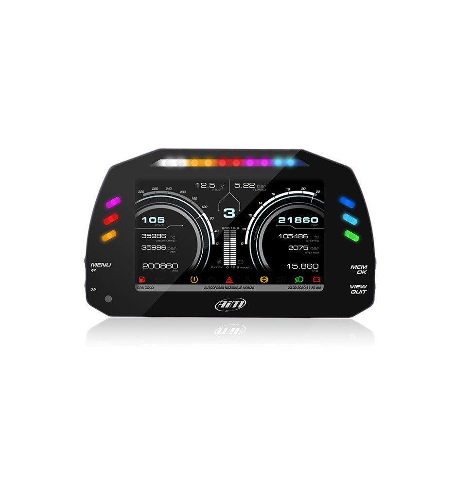 5" TFT display, resolution 800x480 pixels, contrast 600:1, 6 configurable RGB alarm LEDs, integrated 10 RGB LED shift light array, 2 Motorsport connectors + 1 Binder